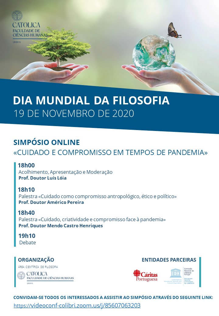 No próximo dia 19 de novembro, a Área Científica de Filosofia da FCH  irá comemorar o Dia Mundial da Filosofia com a organização de um Simpósio online dedicado ao tema "Cuidado e compromisso em tempos de pandemia".
