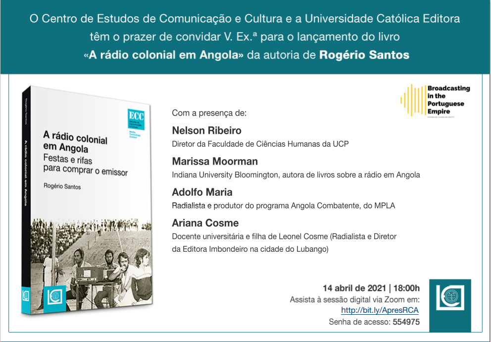 O CECC e a Universidade Católica Editora têm o prazer de convidar para o lançamento do livro A Rádio Colonial em Angola. Festas e Rifas para Comprar o Emissor, da autoria do Prof. Rogério Santos, no próximo dia 14 de abril, às 18h00.